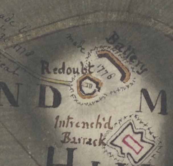 Sept. 17, 1777: “We are at present very busy in fortifying different posts on the Island; and there are already more works planned and traced out, than can possibly be finished by the end of December. …… A fortified Barrick on Windmill hill for 200 men.” (From Mackenzie diary).
